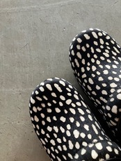 ハラコにドット柄のプリント。白×黒のシックな配色です。