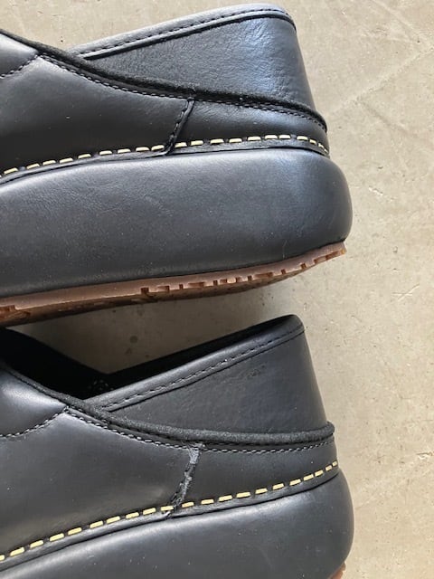 特徴的なステープル(アッパーの革とアウトソールをつなぐ金具)により、