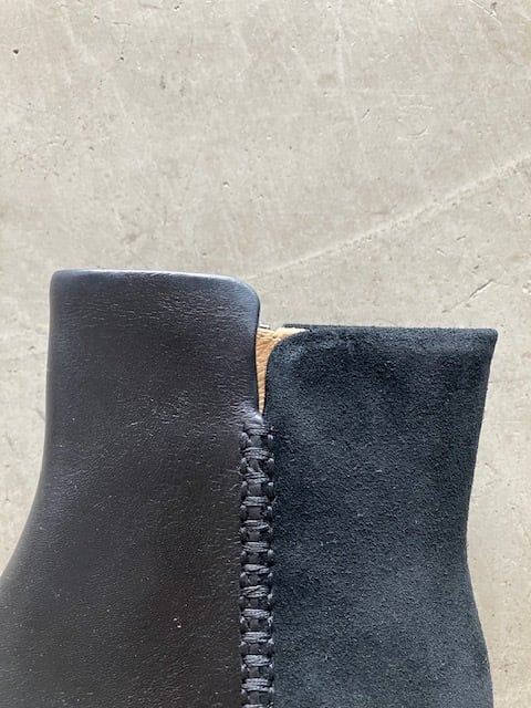 前後で素材をナッパレザーとスエードで切り替えてあるから、艶々すぎず良い塩梅。