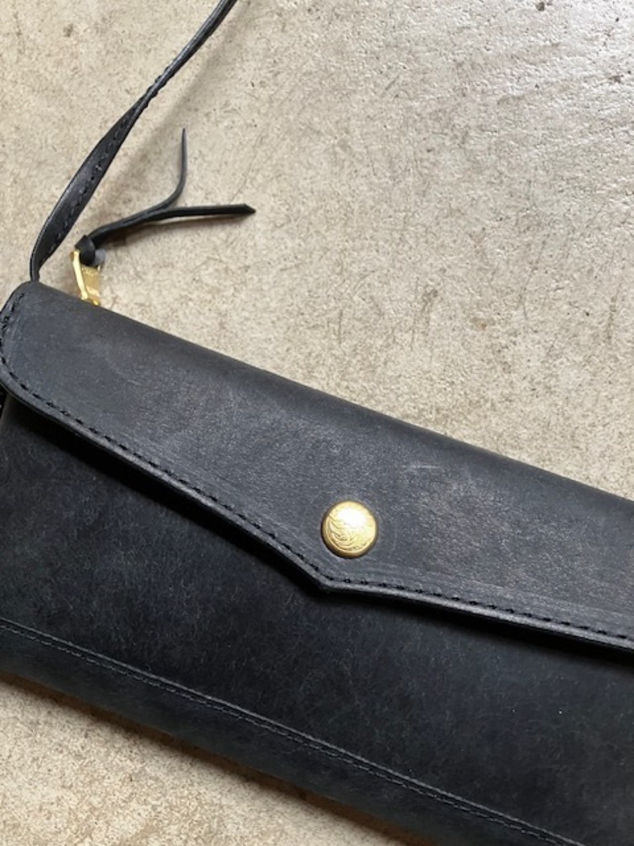 ショルダーの長さは革紐の結ぶ位置で調整可能です。